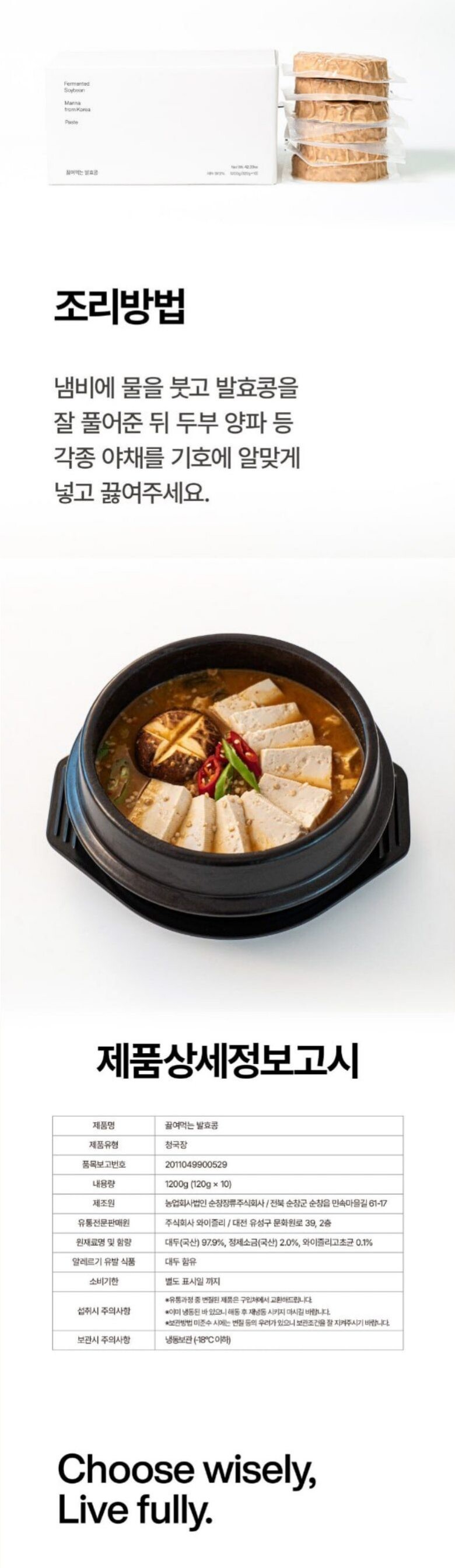 와이즐리 끓여먹는 발효콩(찌게용) 120g x 10팩 태초먹거리 이계호박사